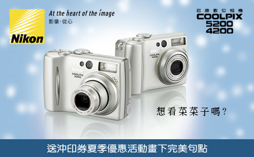 送100張沖洗券夏季優惠活動,熱熱鬧鬧與人氣天后菜菜子電視廣告喧騰整個夏日, 於今天八月二十八日畫下完美句點。國祥貿易非常感謝Nikon愛用者的支持,實實在在體驗到Nikon數位相機畫質, 硬是不怕洗出來比。