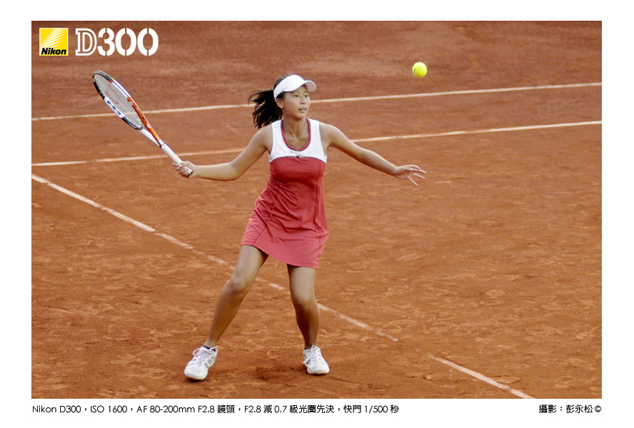 對焦系統也是D300超越D2系列之處,Nikon在D300上毫不吝嗇的使用了和D3相同的CAM3500對焦感應器搭配51點AF測距。實拍結果,即使裝用非AF-S的鏡頭拍攝運動項目,D300都能快速而精準的鎖定主體焦點。